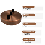 Multi Outlet 3 Hole Ceiling Rose Copper Drop Pendant 120x25mm~2881