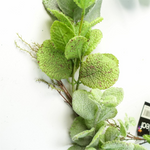 Realistic artificial plants by Leaf. Artificial mint leaf garland. Foliage width as we have it arranged is 125cm x 30cm x 20cm approximately when totally outstretched from end to end. Leaves and stems are plastic. This is arrangeable and it is wired inside the stems so you can shape the garland to fit your space. This is a handmade item and there are minor differences between garlands.Part of our range of realistic plants and trees.