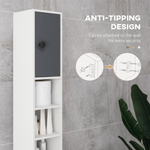 180cm Tall Slim Bathroom Cabinet, Narrow Toilet Roll Storage with Open Shelves, 2 Door Cabinets, Adjustable Shelves, for Kitchen | Kleankin
