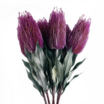 Realistic 75cm artificial Banksia Menziesii single stem, featuring a beautifully crafted plastic flower and plastic leaves. The wired main stem allows for easy shaping and arrangement, making it a versatile addition to any decor. These look particularly nice when combined with foliage to create a larger display. Some of our photos show vases to give an idea of size and possibilities for arrangement, but no vases or planters are included with this foliage.