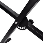 This X-frame single braced keyboard stand, which is made of rugged steel, is ideal for bands, performance teams and other music lovers. Built with heavy duty square tube construction, this keyboard stand is designed to support your keyboard for many years. With 5 different working heights adjustable, this stand could be easily set at a desired height with fundamental stability, thanks to the circular locking mechanism. Anti-slip rubber end caps not only protect your floor from scratches, but also provide an added base support. The foldable design brings easy portability and better storage.