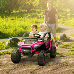 Fulfil their childhood dreams with the AIYAPLAY ride-on UTV, great for thrilling adventures. This two-seater lets kids ride with friends or siblings, featuring a 7AH battery and four motors for up to an hour of fun. Its spring suspension offers a smooth ride on grass, gravel, cement and asphalt. With adjustable speed, kids can drive themselves or parents can use the remote for added fun. Get ready for outdoor excitement and memorable days.