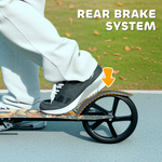 Outdoor fun is made possible with the AIYAPLAY kids scooter. Designed to grow with your child, it features four adjustable levels from 88cm to 103cm, suitable for ages 6-12 years. Smooth riding on various terrains, thanks to its front fork with shock absorption, it glides effortlessly on grass, gravel and cement. The rear brakes provide safe and swift stops. When finished, simply fold it for easy transport and space-saving storage. Great for little explorers ready for exciting adventures.