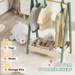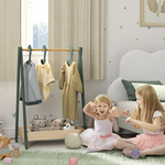 AIYAPLAY Kids Clothes Rail with 3Hangers, Bottom Storage Shelf for Girls, Boys, Nursery, Bedroom, Green