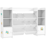 Transform your child's play area with the AIYAPLAY 3-in-1 kids bookshelf and toy storage! This versatile piece features a toy shelf with eight removable bins, a spacious cupboard and bookcase sections. Encourage self-organization with fun DIY stickers, all at a child-friendly height. Suitable for any playroom, its rounded corners offer safety, crafted from MDF and steel.