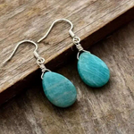 Adorn yourself with the beauty of our Amazonite Teardrop Earrings in a serene sky blue. These earrings feature genuine Amazonite stones, known for their calming and soothing properties. The delicate teardrop shape adds an elegant touch, making them a perfect accessory for both casual and formal occasions. Embrace the tranquil charm of sky blue with these unique earrings, effortlessly combining style and the natural allure of Amazonite. Elevate your look with the calming energy and distinctive beauty of these Amazonite Teardrop Earrings.