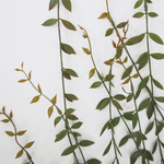 Leaf Design artificial plant. Measures: 120cm tall x 25cm x 2cm. The overall measurement is given at the tallest point as measured from the floor. This plant comes without a pot and is bare stem - ready for you to use in your own arrangement. Pack of 12 individual plants - ideal for displays. Measures 120cm x 25cm when laid flat- width can vary depending on how it is arranged. These look particularly good hanging as a group for a realistic foliage effect. Extra long hanging string of pearls plant. Leaves and vines are plastic.
