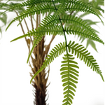 Stunning natural style artificial fern tree potted in black plastic pot. These look brilliant positioned inside a larger decorative planter of your choice. Tree when measured as arranged in our photos is 120 x 90 x 90cm. Plastic base pot measures 15cm x 12cm. Leaves plastic. Trunk artificial.