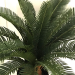 Leaf Design artificial plant. Measures: 70cm tall x 70cm x 70cm. The overall measurement is given at the tallest point as measured from the floor. This plant is potted in a plastic weighted pot. With its modern, minimal shape and green fronded leaves this artificial Cycas Palm plant is a popular choice for modern interiors. This Cycas plant has a tropical look with authentic trunk detailing and realistic leaf formation arrangement. A bold and appealing choice suitable for both residential and commercial applications. This artificial plant stands 70cm high, width 70cm and depth 70cm. The plastic pot measures 17cm wide x 16cm tall. It is highly realistic with botanically accurate foliage. It comes potted in a plain black plastic pot and is ready to display. You can easily put this inside a larger planter if you wish - these look particularly nice in our metal stand planters (available separately).