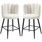 Bar Stools Set of 2, Faux Cashmere Upholstered Breakfast Bar Chairs, Modern Counter Bar Stool w/ Backs, Footrest & Steel Base, Cream | HOMCOM