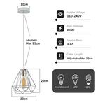 - This pendant ceiling lamp metal diamond wire cage design gives an industrial feel to the lamp, making it a good fit for rustic decoration styles.