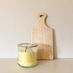 Ribbed glass double wick citronella candle, with wooden leaf decoration. Fill the air with a fresh uplifting scent with this summery feeling candle. Measurements: D12 x H12 x W12cm