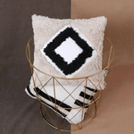 Cushion cover has a single-sided print. Size: 45x45 cm Shape: square Use: cushion cover/throw pillow Material: 100% Polyester Filling: excluding filling Weight: 250 gram Technique: tufted Zipper: invisible zipper Washing instructions: 30°C