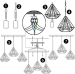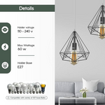 - 1 x 3 Cage Pendant Light (1 x 3 Cage Light, 1 x 3 E27 Holder with 95cm 3 core cable,1 x 3 way ceiling rose with accessories;
