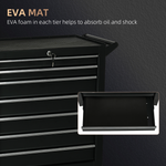 - Drawers and trays include a foam mat that can absorb oil and help keep the tools in place