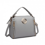 E1851 - Miss Lulu Leather Look Dual Zipped Handbag - Grey