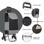The shopping trolley also features a non-slip handle, side pockets, small back pocket with a zipper for your personal belongings and a foldable metal buckle design.