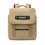 The front of the backpack boasts a detachable KONO label, sitting atop a white woven fabric that can be removed if desired.
