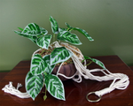 Botanik artificial plant. Measures: 85cm tall x 30cm x 20cm. The overall measurement is given at the tallest point as measured from the floor. This plant Comes in a ceramic pot as shown. Stunning hanging Pothos plant ready to display straight out of the box. This comes with the hanging rope with a metal loop at the top to secure. As we have the plant arranged in our photos it measures 85cm x 30cm x 20cm. Just the plant in the planter measures 20cm x 30cm x 20cm. The decorative ceramic planter itself is quite heavy so easy to weight down in the holder and measures 7cm (h) x 15cm (w). The leaves are plastic. The ceramic decorative planter is topped with fixed pebbles for an attractive low maintenance finish. The rope can be removed if you prefer to use the plant separately.