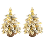 HOMCOM 1.5ft Mini Artificial Christmas Trees with Lights Set of 2, Snow Flocked Tabletop Christmas Trees with Base, Battery Operated, Desktop Party Decoration