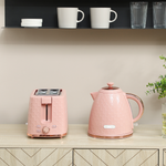 • 1.7L fast boil kettle and matching two-slice toaster. Stylish honeycomb design