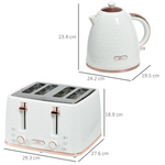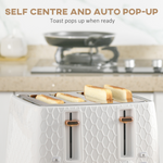 HOMCOM 1.7L 3000W Fast Boil Kettle & 4 Slice Toaster Set, Kettle and Toaster Set with 7 Browning Controls, Crumb Tray, White