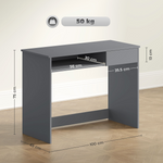 Efficiently save space with this computer desk from HOMCOM. Featuring a keyboard tray and a drawer, it saves a lot of desktop space. Constructed of particle board with grey surface, it's easy to maintain and brings you the atmosphere of nature. Its contemporary look will blend beautifully into any style decor. It's a great choice for you to have this desk in your study, office, or bedroom to enrich your furniture while saving space!