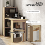 HOMCOM 120cm Computer Desk, Wooden PC Laptop Table with 6-Tier Storage Bookshelves, Home Office Working Study Desk, Writing Workstation, Natural Wood