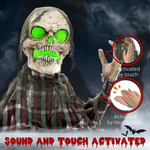 - Motion and sound activated: This scary Halloween decoration is activated by touch or loud sounds - it will scare people when they move past it - a proper halloween fright!