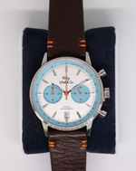 With a slimmed-down profile and reduced case diameter, the HH02 balances bold aesthetics with wearability. Applied indices and inset sub-dials lend depth and intrigue, while the tachymeter chapter ring nods to speed and mechanical legacy. This is a watch that speaks with reserved confidence.