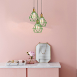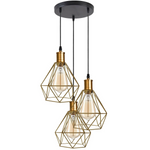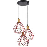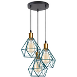 Industrial Retro style 3-Light Pendant lights Adjustable Cord with Diamond Metal Cages~1255