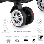 4 x 360 °swivel wheels distribute the weight of your suitcase evenly and ensure easy gliding through busy airports or train stations.