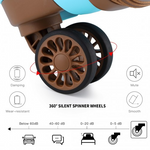 4 x 360 °swivel wheels distribute the weight of your suitcase evenly and ensure easy gliding through busy airports or train stations.