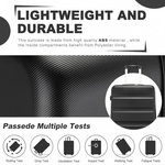 The suitcase is equipped with a fully adjustable telescopic handle, TSA-approved customs lock, and smooth, silent TPE airplane wheels for effortless mobility.