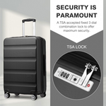 The suitcase is equipped with a fully adjustable telescopic handle, TSA-approved customs lock, and smooth, silent TPE airplane wheels for effortless mobility.