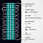 Item Specifications   Technical Details Item Type LED Module Style Retro Light Shape Clip Power Source Corded LED String/Strip Type SMD Lighting Technology LED Output Voltage 12 V Working Power 1.5W per Module IP Rating  IP67...
