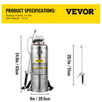 VEVOR Stainless Steel Sprayer 12L Household Gardening and Floor Cleaning Sprayer, Suitable for the Current Neds of Industry, Agriculture, Commerce, Medicine and Other Industries