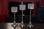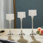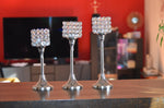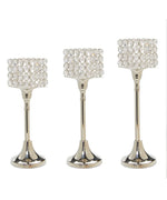 - Crystal Candle Holders for Table 10”, 11" and 12” in size. Hurricane Candle Holder Silver Nickel Finish Candlestick Set of 3