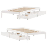 Get a better restful night's sleep from this bed frame! It makes a welcoming addition to any bedroom. Stable and long-lasting frame: Solid pinewood is known for its strength and durability. Its straight grains and distinctive knots contribute to its rustic charm.Slatted base for optimal support: The bed frame is equipped with a slatted base for support and breathability for your mattress.Extra storage space: This bed base features two drawers underneath, providing storage for items like extra bedding, seasonal clothing, and toys.Effortless manoeuvrability: This under-bed storage drawer features four wheels, providing smooth and effortless manoeuvrability for sliding in and out from beneath your bed. Good to know:A mattress is not included with this bed. We do offer a various selection of mattresses. You can check our shop for a matching mattress.
