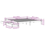 Get a better restful night's sleep from this bed frame! It makes a welcoming addition to any bedroom. Stable and long-lasting frame: Solid pinewood is known for its strength and durability. Its straight grains and distinctive knots contribute to its rustic charm.Slatted base for optimal support: The bed frame is equipped with a slatted base for support and breathability for your mattress.Make full use of space: This bed frame features two drawers underneath, providing storage for items like extra bedding, seasonal clothing, and toys.Effortless manoeuvrability: This under-bed storage drawer features four wheels, providing smooth and effortless manoeuvrability for sliding in and out from beneath your bed. Good to know:A mattress is not included with this bed. We do offer a various selection of mattresses. You can check our shop for a matching mattress.