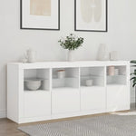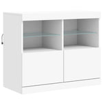 Decorate your room with this modern sideboard with LED lights, it easily blends with furniture in any style at your house. Durable material: The engineered wood is of exceptional quality with smooth surface and also features strength, stability and resistance to moisture.RGB LED lights: The buffet is equipped with vibrant RGB LED lights. With various customisable menus, you can effortlessly change the colour of the lights and even set them to adjust automatically. These LED lights not only enhance the contemporary look of the sideboard cabinet but also add to its trendy appeal.Ample storage space: The storage cabinet offers plenty of space to keep your everyday items neatly arranged and easily accessible.Displaying function: The sturdy top of the hallway cabinet is ideal for displaying decorative objects, photo frames, or potted plants.Practical doors: Keep your essentials free from dust by hiding them behind the doors of the side cabinet. Good to know:The product has a USB connector that requires a certified 5V USB power source (not included). Warning:To prevent it being overturned, this product must be used with the provided wall attachment device.