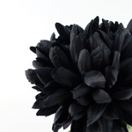 Leaf Design Product. Black extra large Reflex Chrystanthemum with silk petals. Can be used to make arrangements with our other artificial flowers or as decorations on their own. Each stem measures 75cm overall height x 20cm wide x 20 deep and has a single large flower head. Flowers are silk. These are easy to cut down shorter using a pair of wire cutters if required. Some of our photos show vases to give an idea of size and possibilities for arrangement but no vases or planters are included with these flowers.