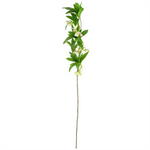 Leaf Design Product. Artificial Hainan Elaeocarpus Stem with plastic leaves and flowers. Can be used to make arrangements with our other artificial flowers or as decorations on their own. Each stem measures 90cm overall height x 15cm wide x 15cm deep with nine flowers.. These are easy to cut down shorter using a pair of wire cutters if required. Some of our photos show vases to give an idea of size and possibilities for arrangement but no vases or planters are included with these flowers.