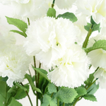 Leaf Design Product. Pack of 6 x White artificial carnation stem. Can be used to make arrangements with our other artificial flowers or as decorations on their own. Each stem measures 70cm overall height x 15cm wide and has four flowers. Flowers are silk. These are easy to cut down shorter using a pair of wire cutters if required. Some of our photos show vases to give an idea of size and possibilities for arrangement but no vases or planters are included with these flowers.