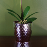 Leaf Design orchid plant. Measures: 50cm tall x 20cm x 20cm. The overall measurement is given at the tallest point as measured from the floor. This plant This plant is potted in a plastic weighted pot. Part of our range of realistic artificial orchids, this plant is potted in a plastic decorative pot with fixed gravel topping. Realistic artificial orchid plant with real touch leaves, glued fixed gravel base, potted in a plastic decorative pot as shown. 9 real touch flowers. Pot is plastic in a silver honeycomb design and measures 10cm (h) x 12cm (w) Overall height as arranged in our photos 50cm. Stems are wired and this plant can be arranged to your requirements.