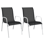 This sophisticated garden furniture set will become the focal point of your garden, patio, or dining room. The comfortable chairs are constructed from high-quality powder-coated steel. Thanks to the strong textilene fabric, our chairs are weather-resistant and easy to clean. The chairs are stackable to save space. The table has a 5 mm thick tabletop made of tempered ripple glass, on which you can place drinks, snacks or decorative items. It also has a sturdy powder-coated steel frame that is durable and easy to maintain. Assembly is easy. Delivery includes 1 table and 2 textilene chairs. Note: We recommend covering the set in the rain, snow and frost.