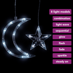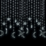 The star and moon fairy light is perfect for use as a lighting addition to any decorative project. It is suitable for Christmas, parties, weddings and other holidays. The curtain light is equipped with 345...