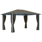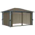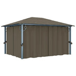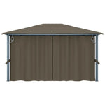 vidaXL Gazebo with Curtain&LED String Lights 4x3 m Taupe Aluminium