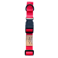 Standard collar made with strong 20mm Polypropylene webbing. Equipped with side release buckle for easy fitting and removal. Fully adjustable using the 3 bar slider for perfect fit. All handmade in the UK Key Features