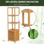 This tower combines style and functionality for beautiful storage, perfect for the bathroom and beyond. Its tall and slightly narrow design is ideal for fitting into tighter spots, featuring three large open shelves and a bottom cupboard for plenty of storage. Slatted on the shelves and the cupboard door, plenty of air is allowed to pass through to keep everything fresh, with four stump feet for balance to finish.